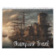 Steampunk designs on each month's page - trains, Ferris wheel, hot air balloons and other machines.