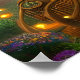 Beautiful vertical poster created using AI rendering software features a Steampunk style treehouse and observatory with domed rooms and round windows.