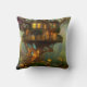 Colorful throw pillow created using AI rendering software features a Steampunk style treehouse and observatory with domed rooms and round windows.