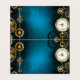 Turquoise, textured, steampunk background with brass and gold gears, a silver key and the clock. Steampunk style.