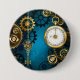 Turquoise, textured, steampunk background with brass and gold gears, a silver key and the clock. Steampunk style.
