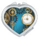 Steampunk turquoise Background with Gears Compact Mirror