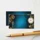 Turquoise, textured, steampunk background with brass and gold gears, a silver key and the clock. Steampunk style.