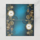 Turquoise, textured, steampunk background with brass and gold gears, a silver key and the clock. Steampunk style.