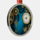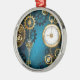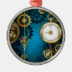 Turquoise, textured, steampunk background with brass and gold gears, a silver key and the clock. Steampunk style.
