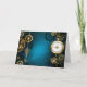 Turquoise, textured, steampunk background with brass and gold gears, a silver key and the clock. Steampunk style.