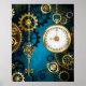 Steampunk turquoise Background with Gears Poster
