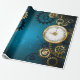 Steampunk turquoise Background with Gears Wrapping Paper