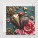 Personalized steampunk photo template Valentine's Day card. Pretty pink flowers and metal gears, The back has three spaces for pictures. You can edit the text too in the personalize area.