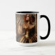 This steampunk Victorian golden astronomer in a gold and brass dress with clockwork gears uses an elegant telescope to observe a historical steampunk fantasy world where retro-futuristic science reigns.