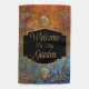 A vintage,steampunk, industrial design featuring rusty texture Victorian elements, clockwork gears and cogs. Welcome everyone to your garden with elegant gold lettering.