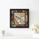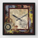 Rustic Steampunk wheel, cogs, watch parts- kitchen or Lounge wall clock square - add name customize. Design by LeahG