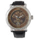 This watch looks great - when new, and keeps great time. The only problem is that the chrome plating on the metal did not last. I wore the watch for ten days and the copper-colored base metal was showing - very unsightly and disappointing. Good image and printing.