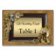 Gothic - Gold & Brass Steampunk Wedding on Suede texture with a dark leather frame - number and name cards for each table