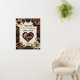 Pretty wedding sign with bride and groom's photo inside a heart. Burgundy paisley and vintage weathered paper background with burgundy roses, gold and copper metal gears steampunk theme.