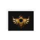 Shiny mechanical wings, with gears and brass round banner. Steampunk
