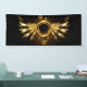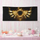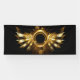 Shiny mechanical wings, with gears and brass round banner. Steampunk