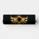 Shiny mechanical wings, with gears and brass round banner. Steampunk