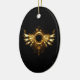 Shiny mechanical wings, with gears and brass round banner. Steampunk