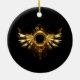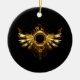 Shiny mechanical wings, with gears and brass round banner. Steampunk