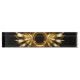 Shiny mechanical wings, with gears and brass round banner. Steampunk