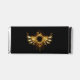 Shiny mechanical wings, with gears and brass round banner. Steampunk