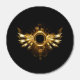 Shiny mechanical wings, with gears and brass round banner. Steampunk