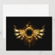 Shiny mechanical wings, with gears and brass round banner. Steampunk