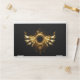 Shiny mechanical wings, with gears and brass round banner. Steampunk