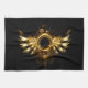 Shiny mechanical wings, with gears and brass round banner. Steampunk
