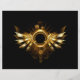 Shiny mechanical wings, with gears and brass round banner. Steampunk