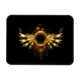 Shiny mechanical wings, with gears and brass round banner. Steampunk