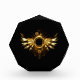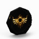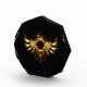 Shiny mechanical wings, with gears and brass round banner. Steampunk