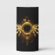 Shiny mechanical wings, with gears and brass round banner. Steampunk