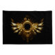 Shiny mechanical wings, with gears and brass round banner. Steampunk