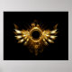Shiny mechanical wings, with gears and brass round banner. Steampunk