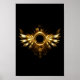 Shiny mechanical wings, with gears and brass round banner. Steampunk