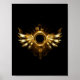 Shiny mechanical wings, with gears and brass round banner. Steampunk