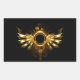 Shiny mechanical wings, with gears and brass round banner. Steampunk