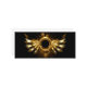 Shiny mechanical wings, with gears and brass round banner. Steampunk