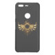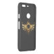 Shiny mechanical wings, with gears and brass round banner. Steampunk