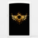 Shiny mechanical wings, with gears and brass round banner. Steampunk