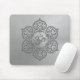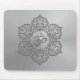 A delicate Ohm design inside of a stylized lotus flower. The design has the appearance of being engraved into a stainless steel background.