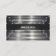 This bold and rugged business card design showcases a steel riveted panel look with detailed metal textures. Ideal for professionals in construction, engineering, mechanical trades, or handyman services, it exudes strength and reliability. The industrial aesthetic and precise details make this card perfect for creating a lasting impression.