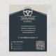 A simple flyer with QR Code for driving school activities featuring a stylized steering wheel as the central graphic element and a road on the background. It could also be used for auto sales, car driver, taxi, transport, auto repair, car wash, etc.
