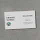 A simple business card for driving school activities featuring a steering wheel icon with a green check symbol. It could also be employed for various purposes, including auto sales, taxi driving, transportation, auto repair, and car washing.
