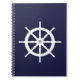 Steering wheel on navy blue background. notebook
