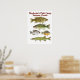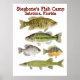 Poster for Stegbone's Fish Camp featuring images of original watercolors by Thom Glace of a Smallmoth and Largemouth Bass, Black Crappie, Bluegill and Chain Pickerel.
