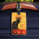 A charming classic Art Nouveau luggage tag featuring a poster art for the cabaret Le Chat Noir, painted by the Swiss-born French Art Nouveau painter and printmaker Théophile Alexandre Steinlen.