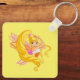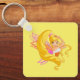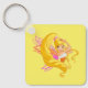 The key chain is made of metal and really sturdy. The flower design is really cheerful. The logo and colors are clear and crisp!